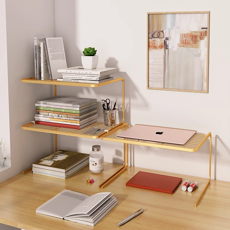 デスク整理の必需品!多層デスクラック - オフィスや寮に最適なシンプルで機能的な収納シェルフ。書籍や文房具をすっきり整理して、作業効率UP!