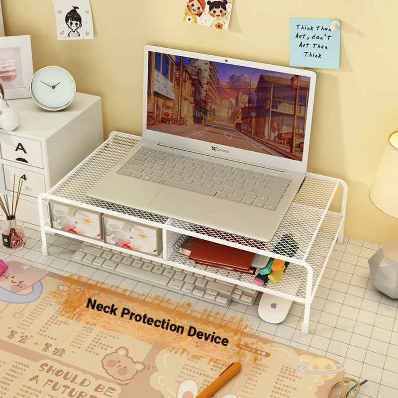 Laptop Stand for Dorm Room - No Installation Required, Stylish Desktop Monitor Shelf Organizer Perfect for Home Office Use
