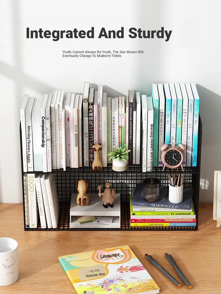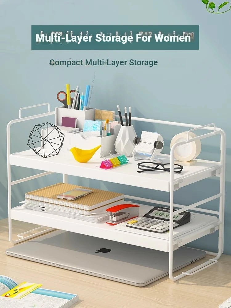 Compact Multi-Layer Desk Organizer - Stylish Iron Bookshelf for Home Office, Ideal for Efficient Storage and Organization on Your Desk, Trendy Design for Modern Spaces