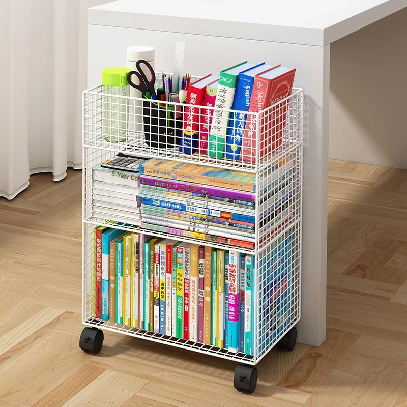 Mobile Bookshelf with Wheels - Versatile Floor Storage Rack for Desks, Perfect for Students to Organize Books and Backpacks in Classrooms and Study Areas.
