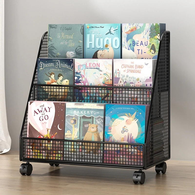 Mobile Bookshelf with Wheels for Kids - Versatile Reading Rack and Toy Organizer for Home, Perfect for Children’s Picture Books and Storage Solutions, Stylish Floor Stand Bookcase.