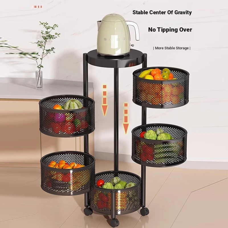 Multifunctional Rotating Kitchen Storage Rack - Multi-Layer Floor Snack Trolley with Fruit and Vegetable Baskets for Home Organization