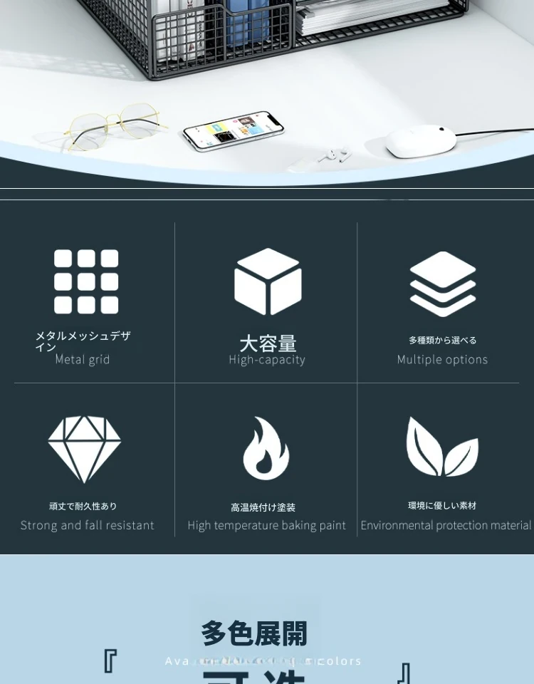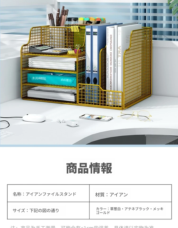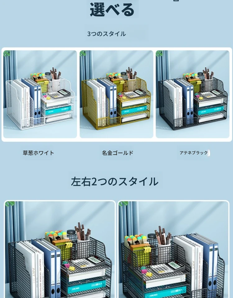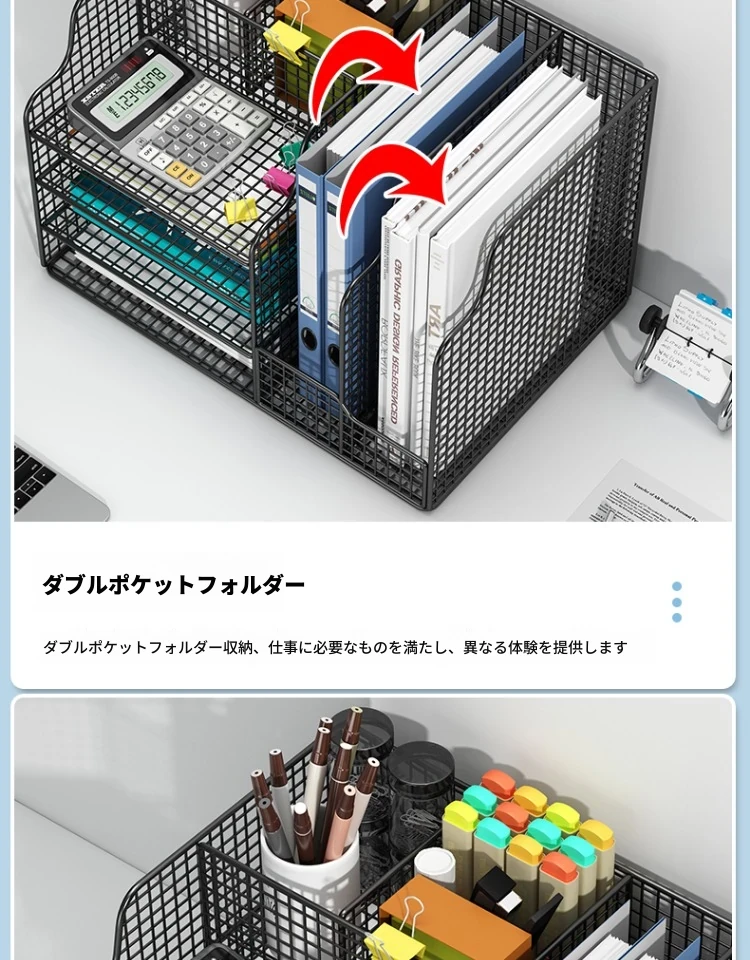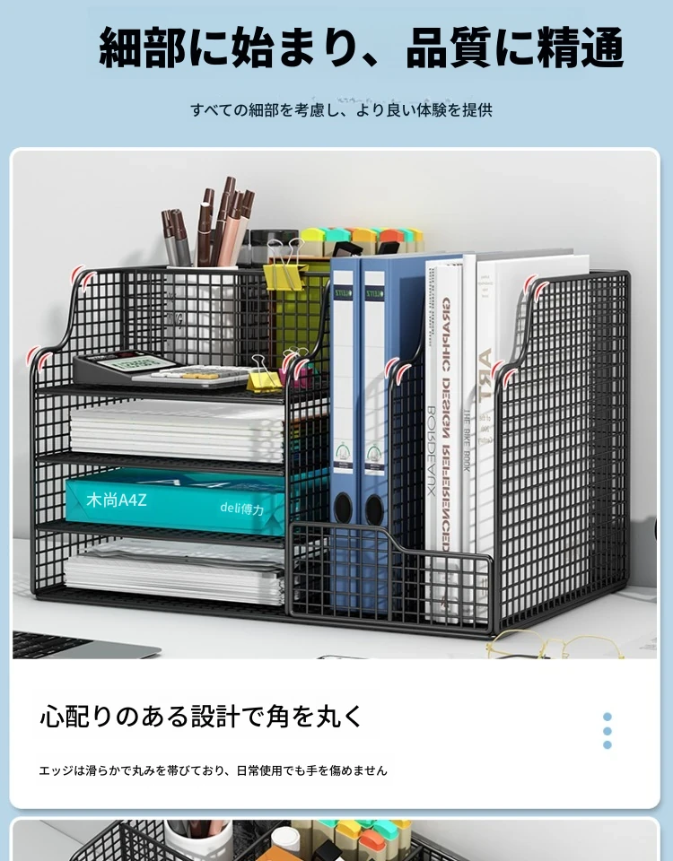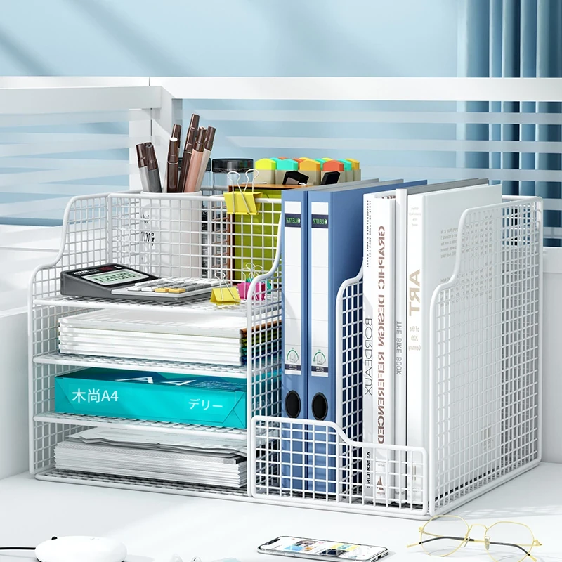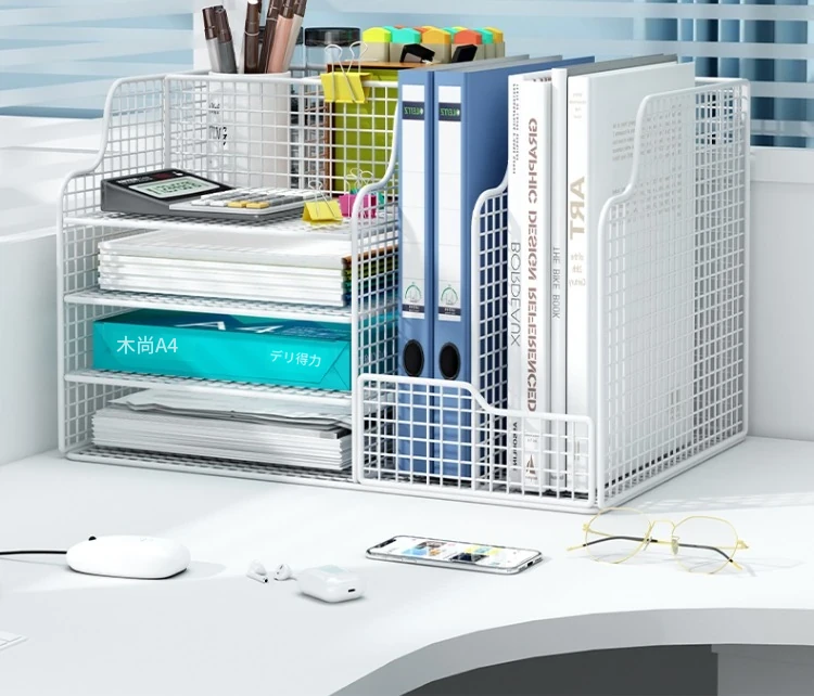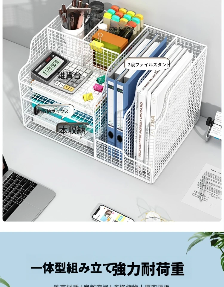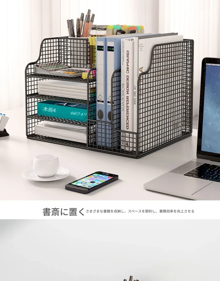 デスク上のA4ファイルバスケット|オフィス整理に最適なスタンド式書類収納ラック|効率的でスタイリッシュなデスク周りを実現!