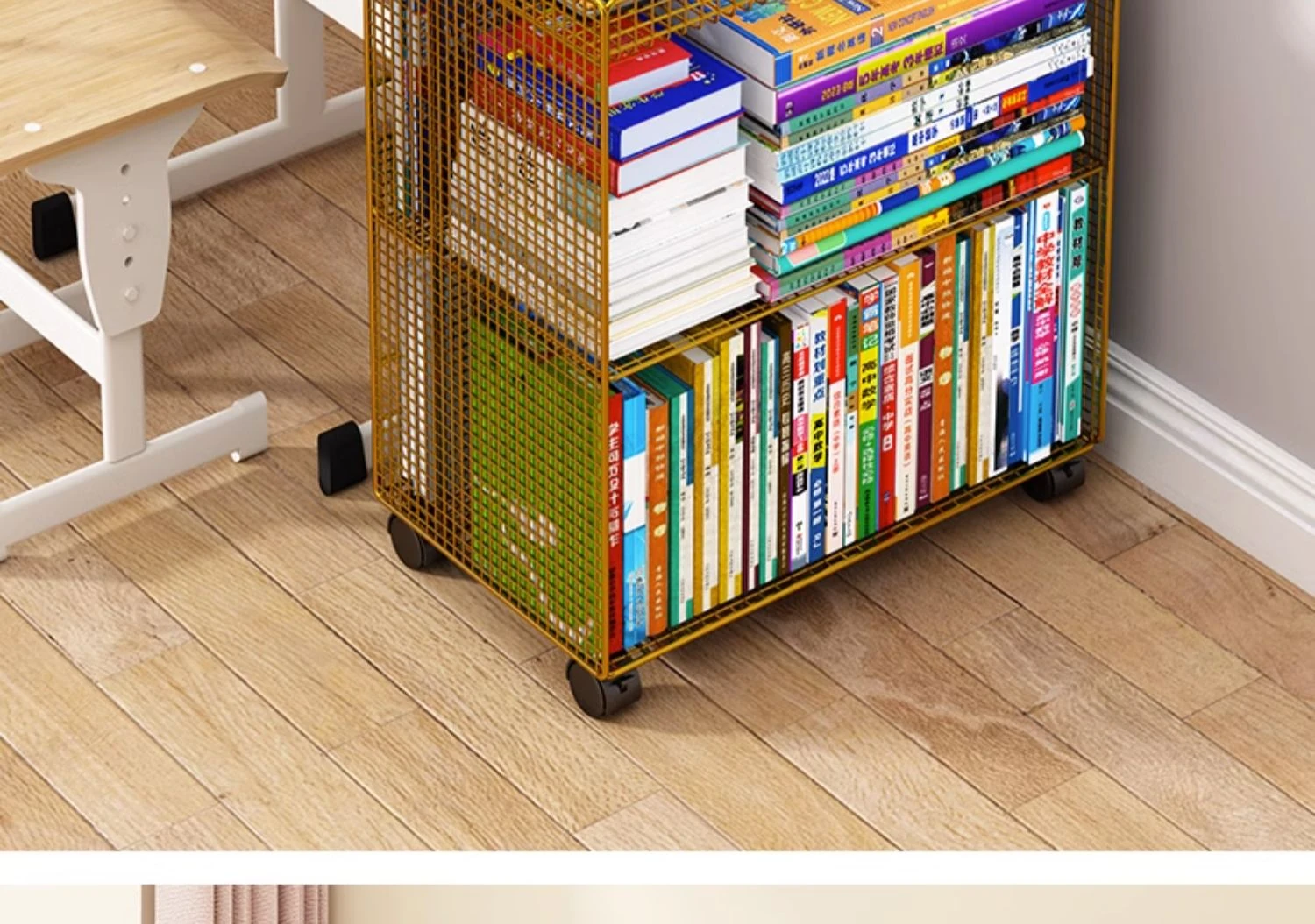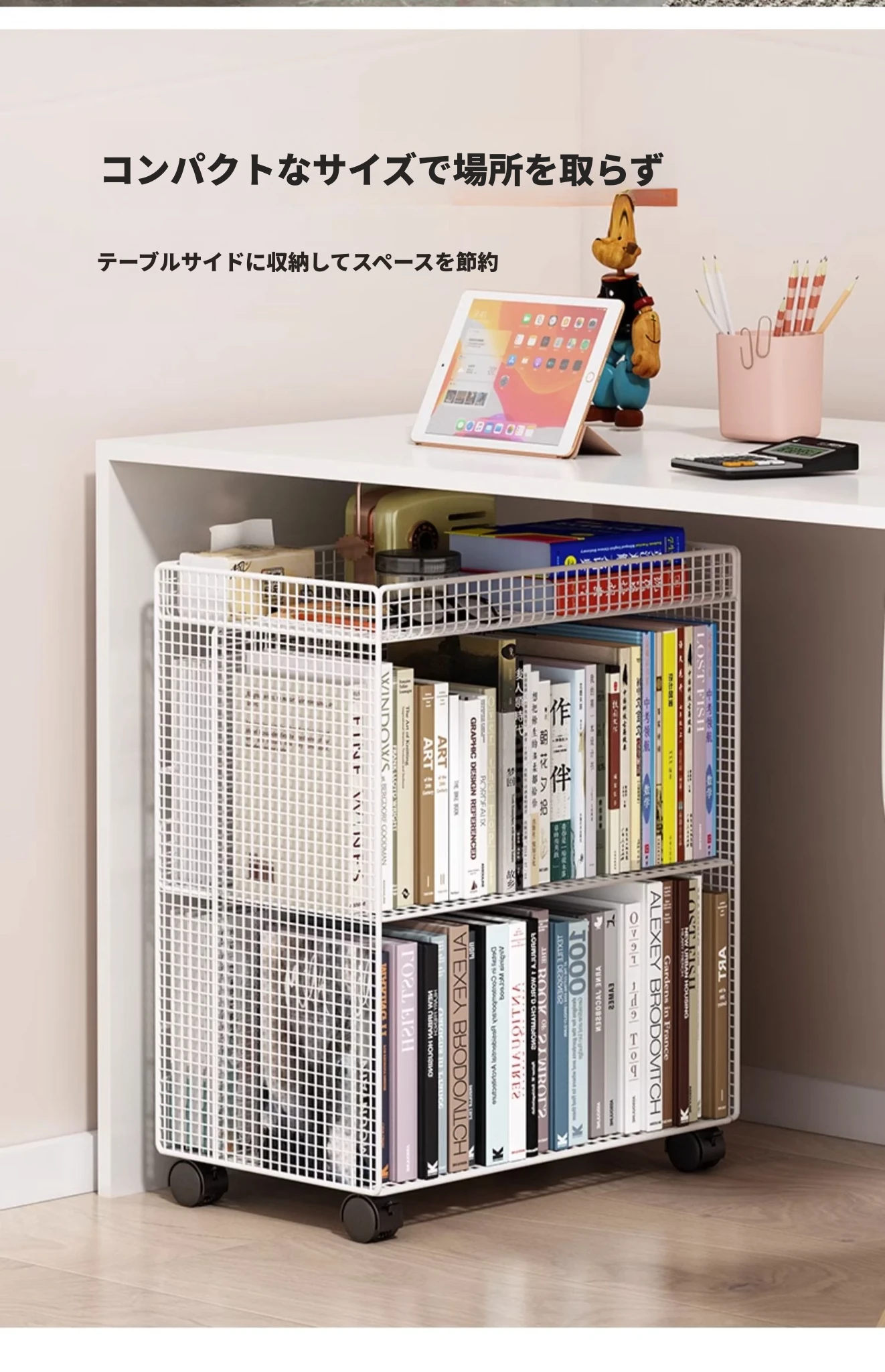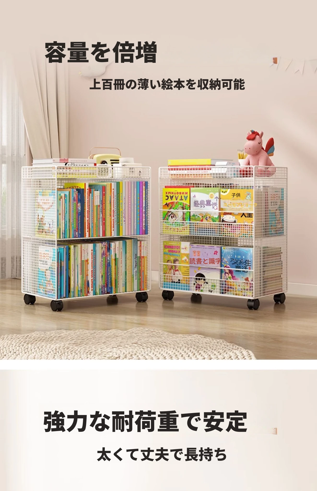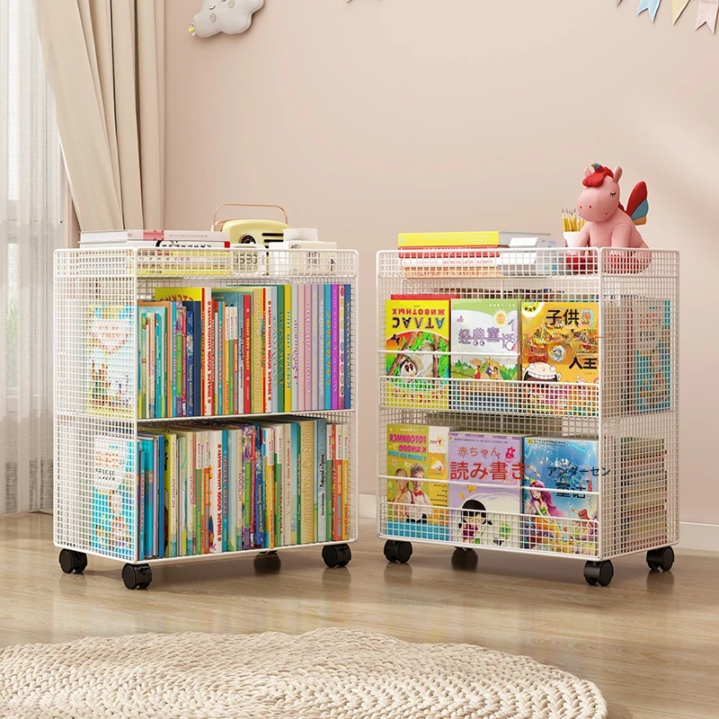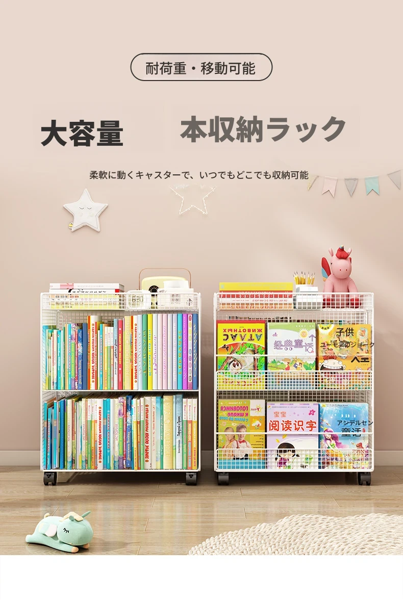 子供用フロアブックシェルフ - 移動可能なキャスター付き収納ラック、簡単に使える読書スタンド、机のそばに最適な本棚。お部屋をおしゃれに整理整頓!
