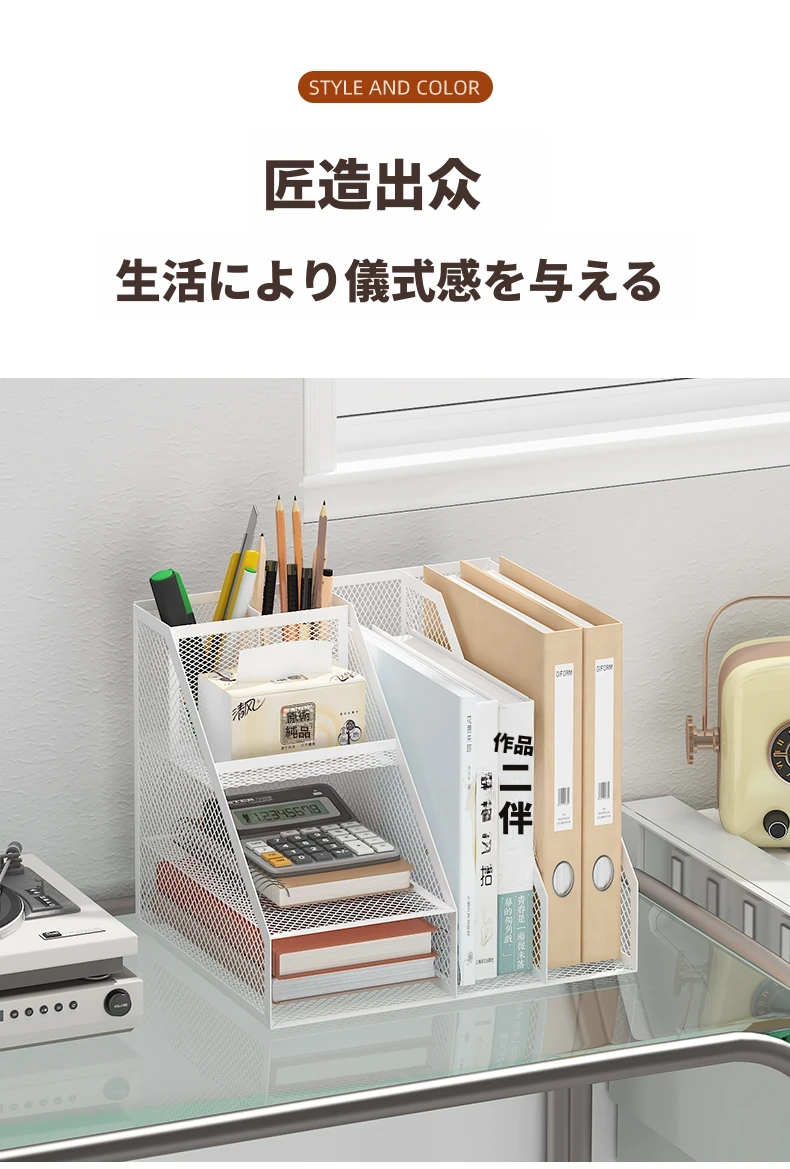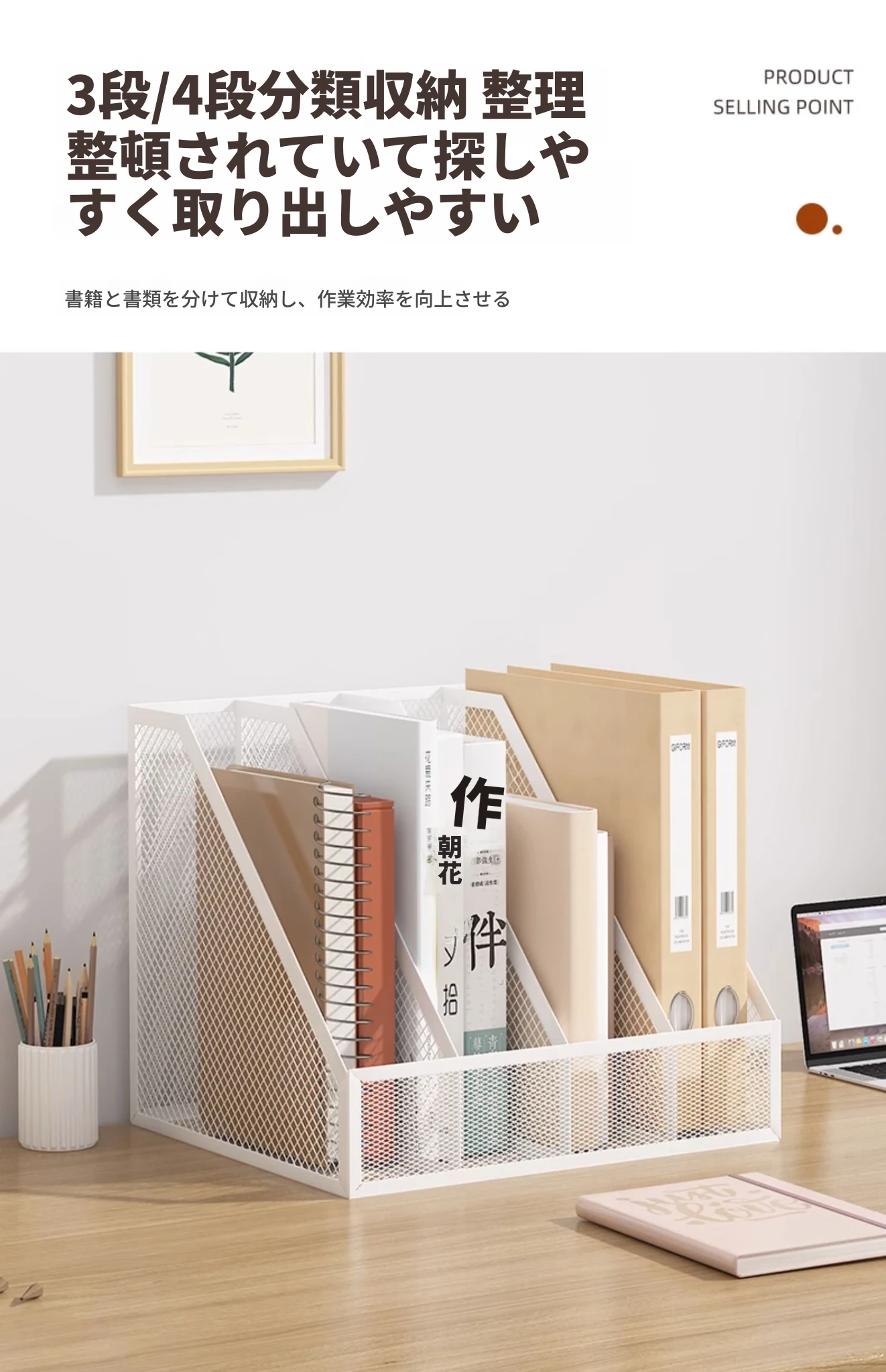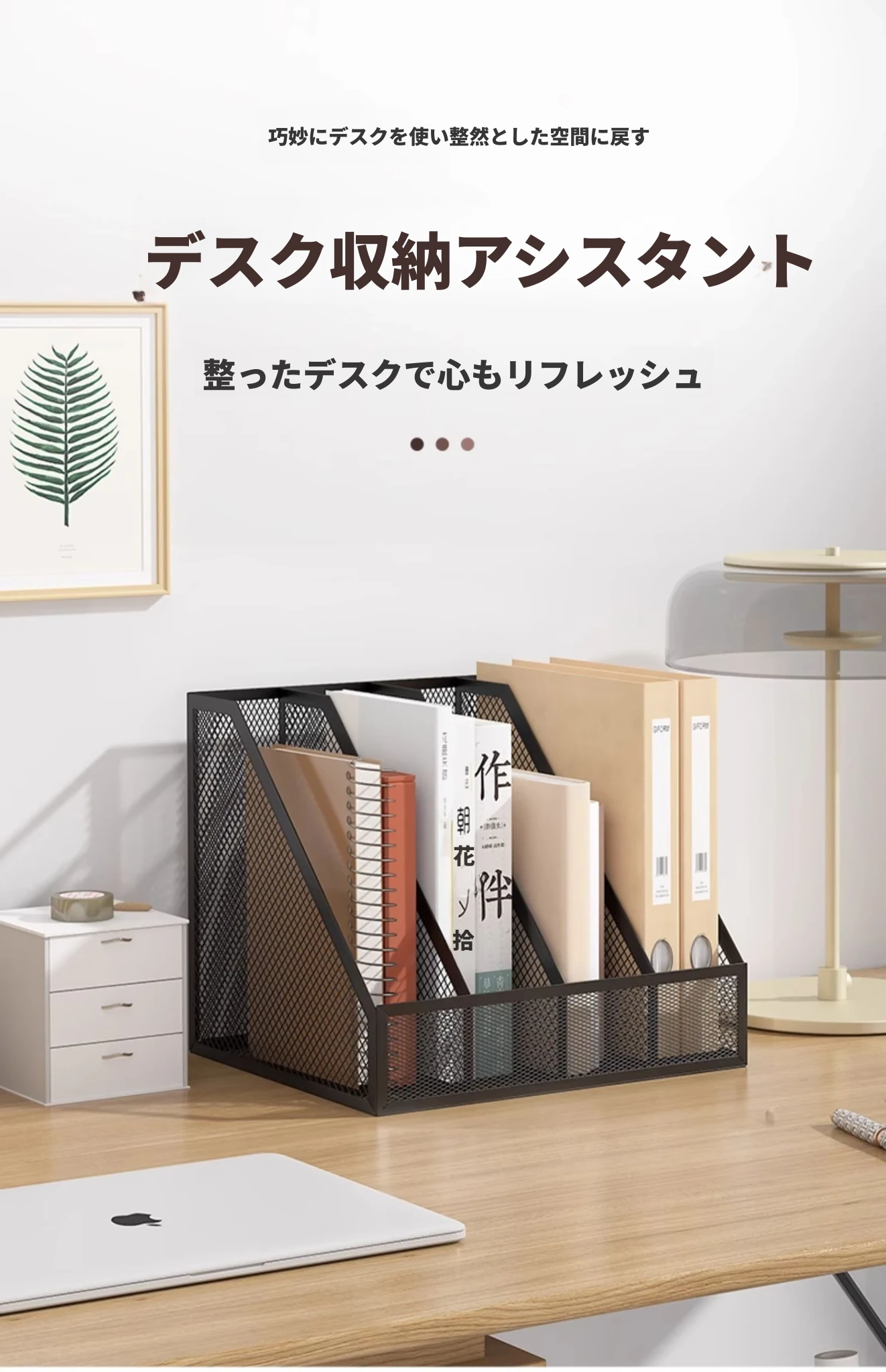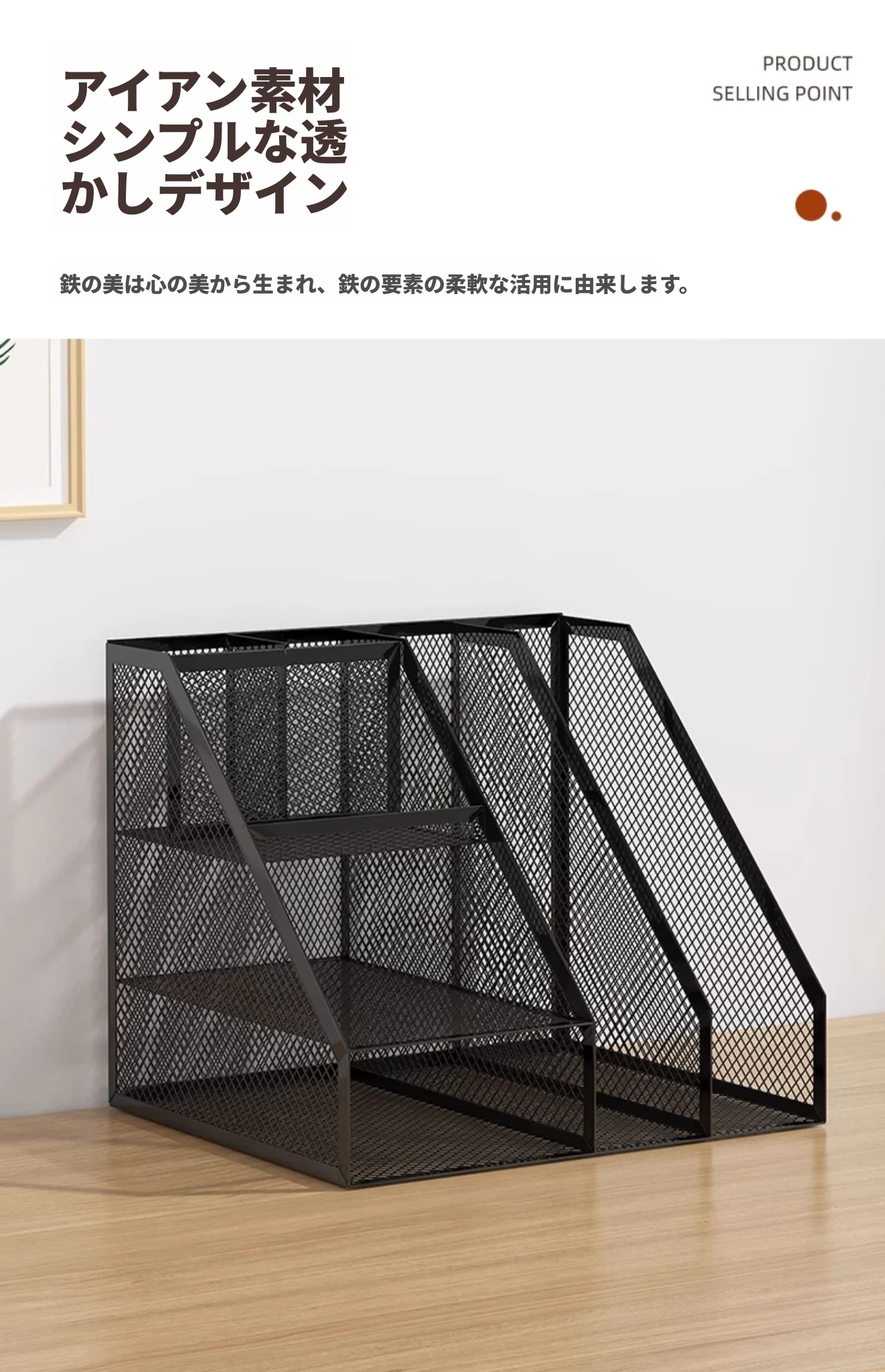 デスク用ブックシェルフ・ファイルスタンド・収納ボックス - 金属製のスタイリッシュなオフィスデスク資料ラック!整理整頓を簡単にし、効率的な作業環境を実現します!
