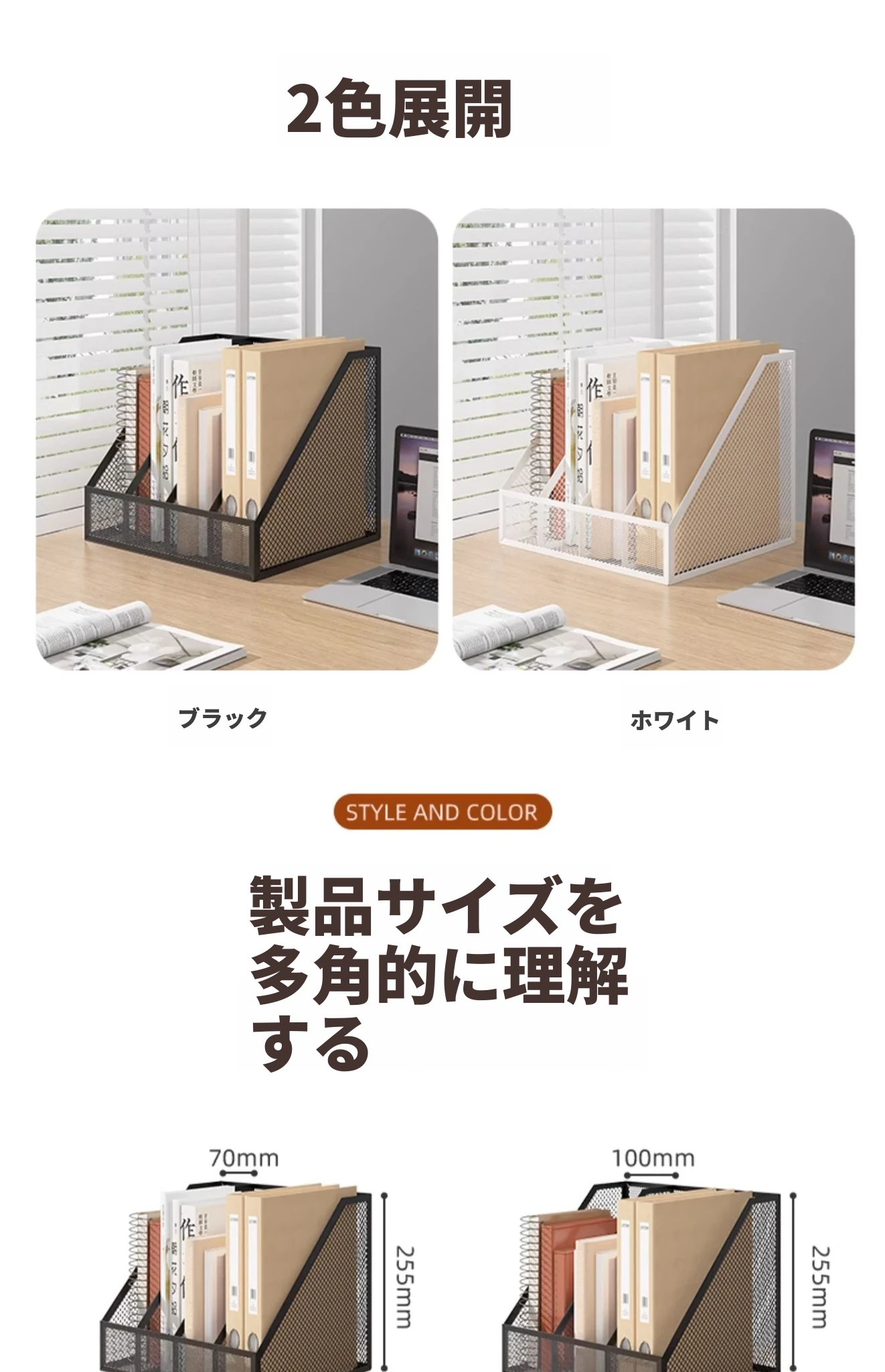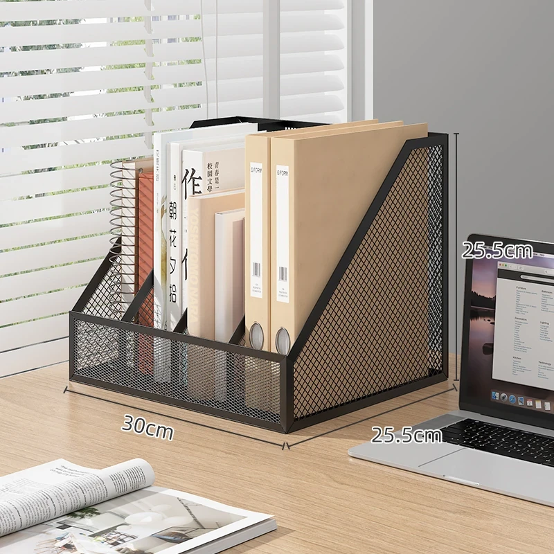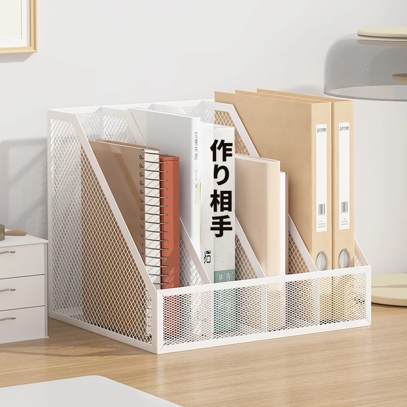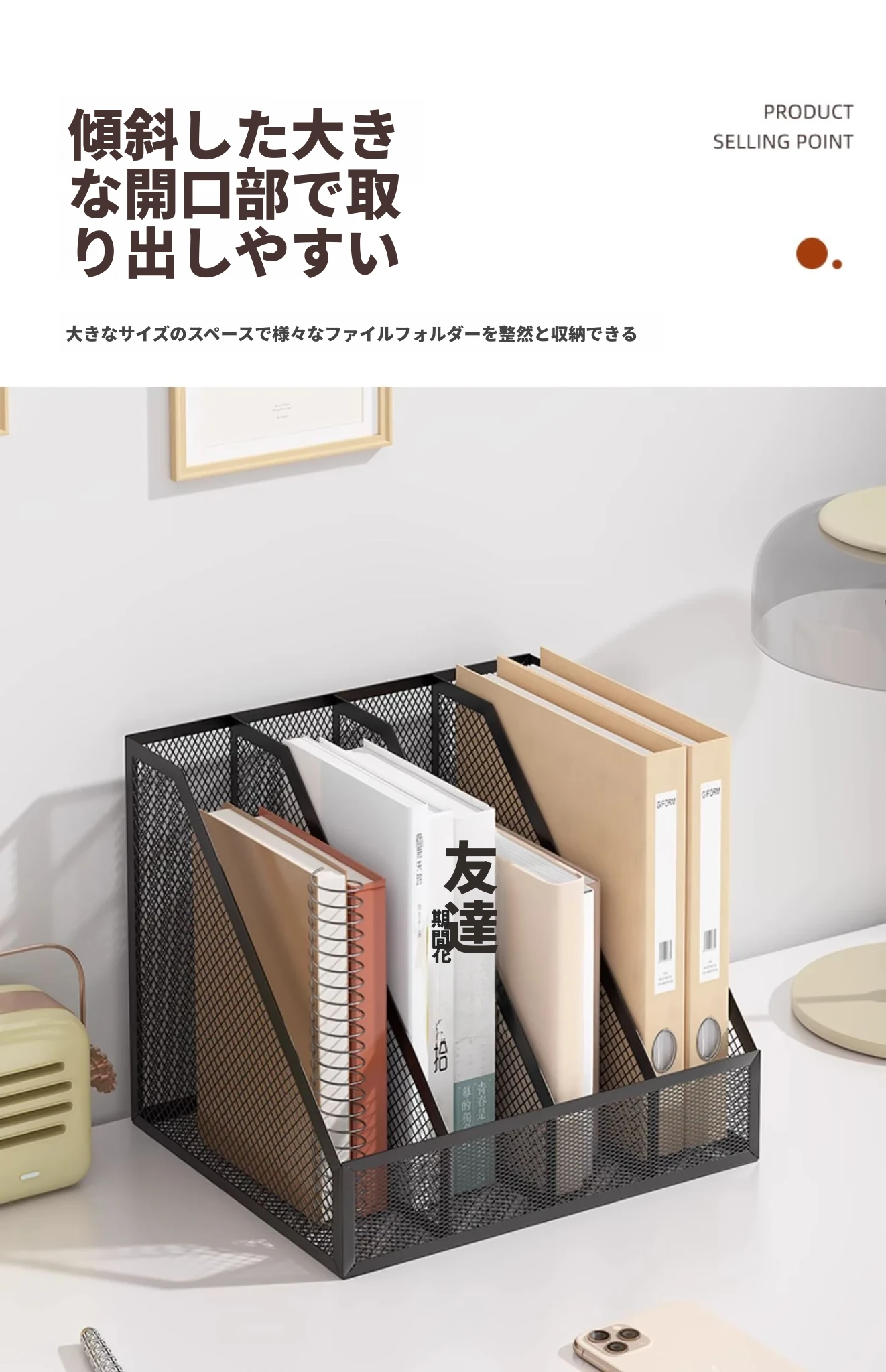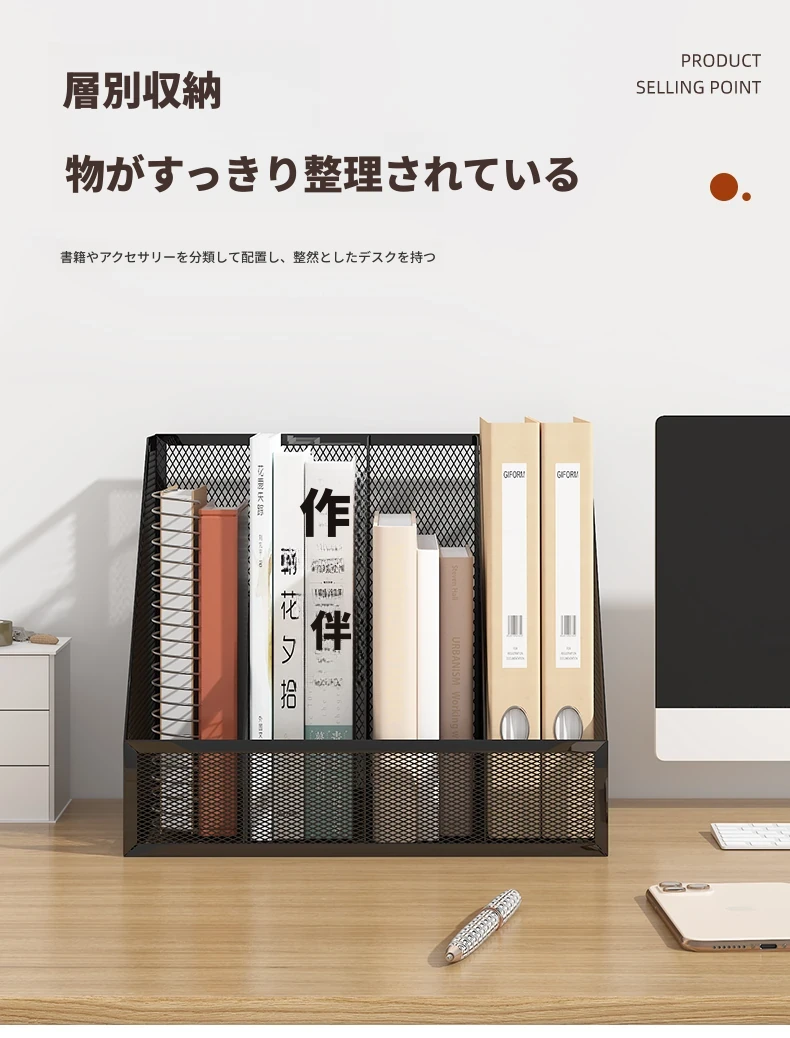 デスク用ブックシェルフ・ファイルスタンド・収納ボックス - 金属製のスタイリッシュなオフィスデスク資料ラック!整理整頓を簡単にし、効率的な作業環境を実現します!