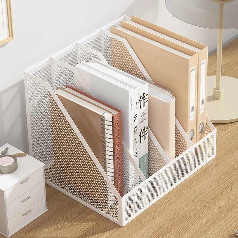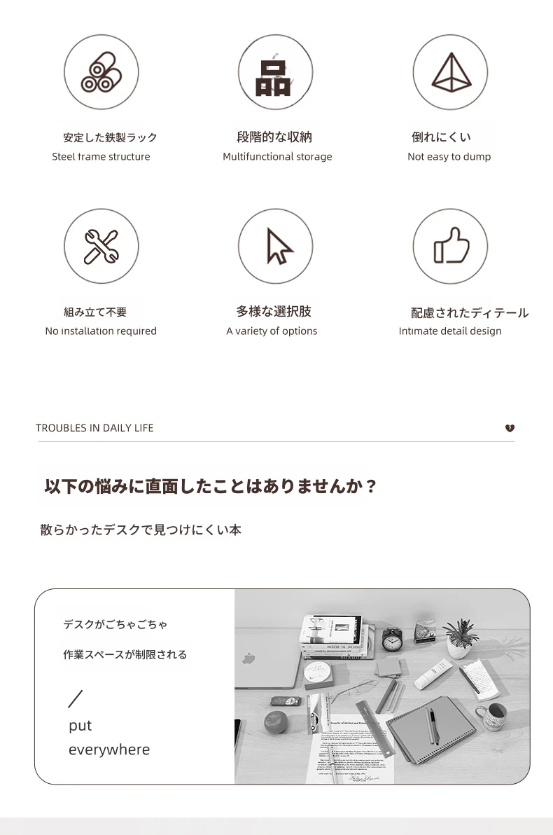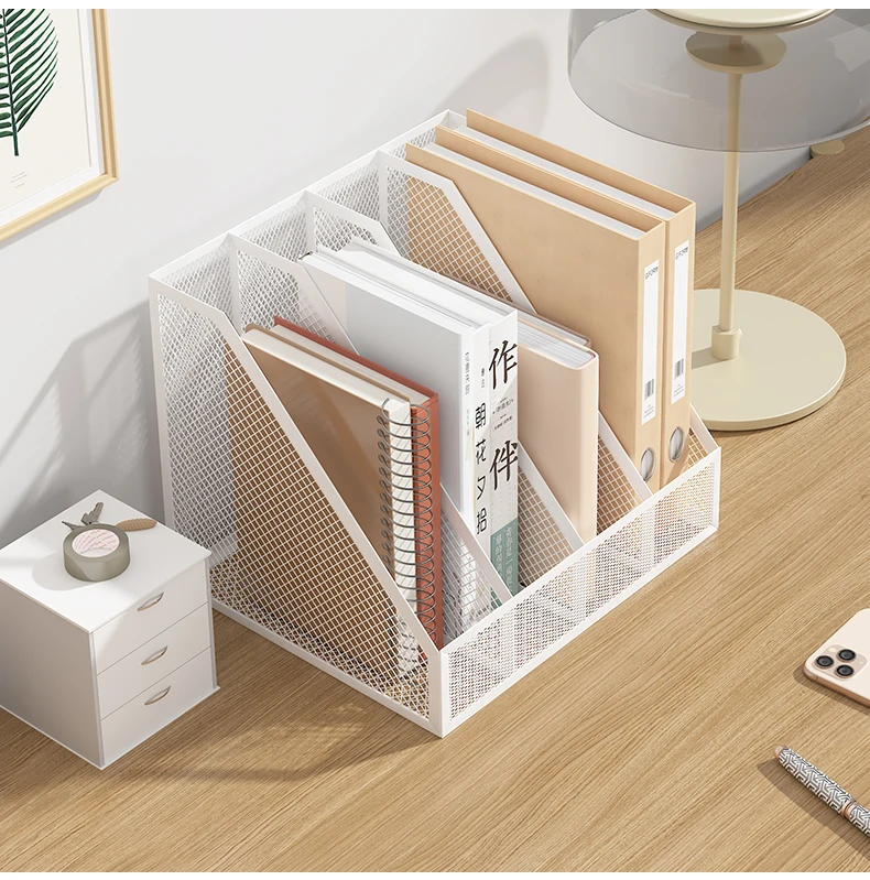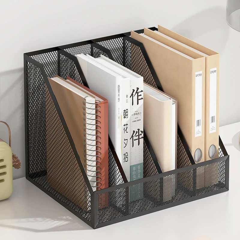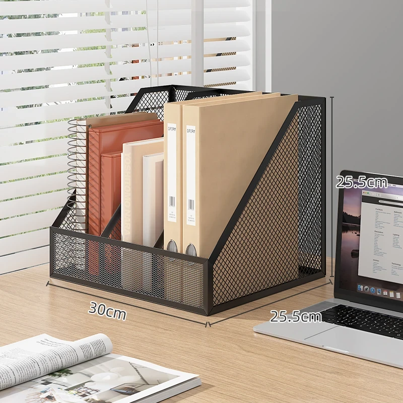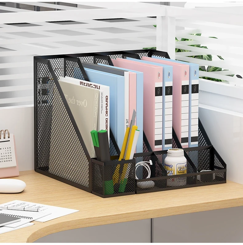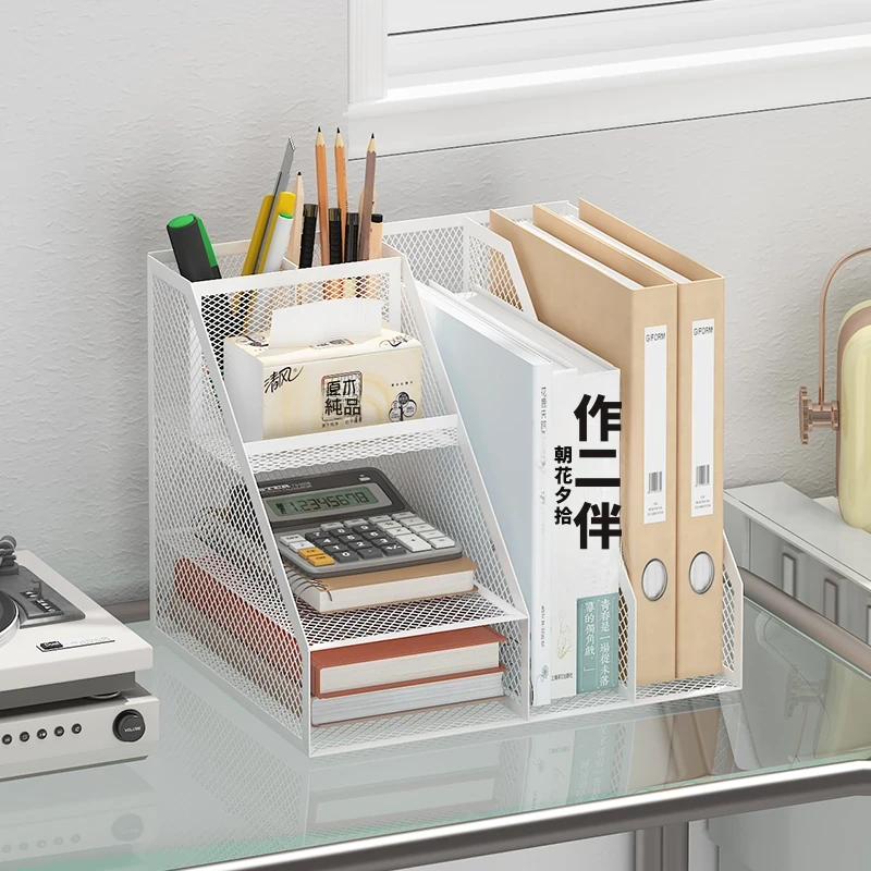 デスク用ブックシェルフ・ファイルスタンド・収納ボックス - 金属製のスタイリッシュなオフィスデスク資料ラック!整理整頓を簡単にし、効率的な作業環境を実現します!