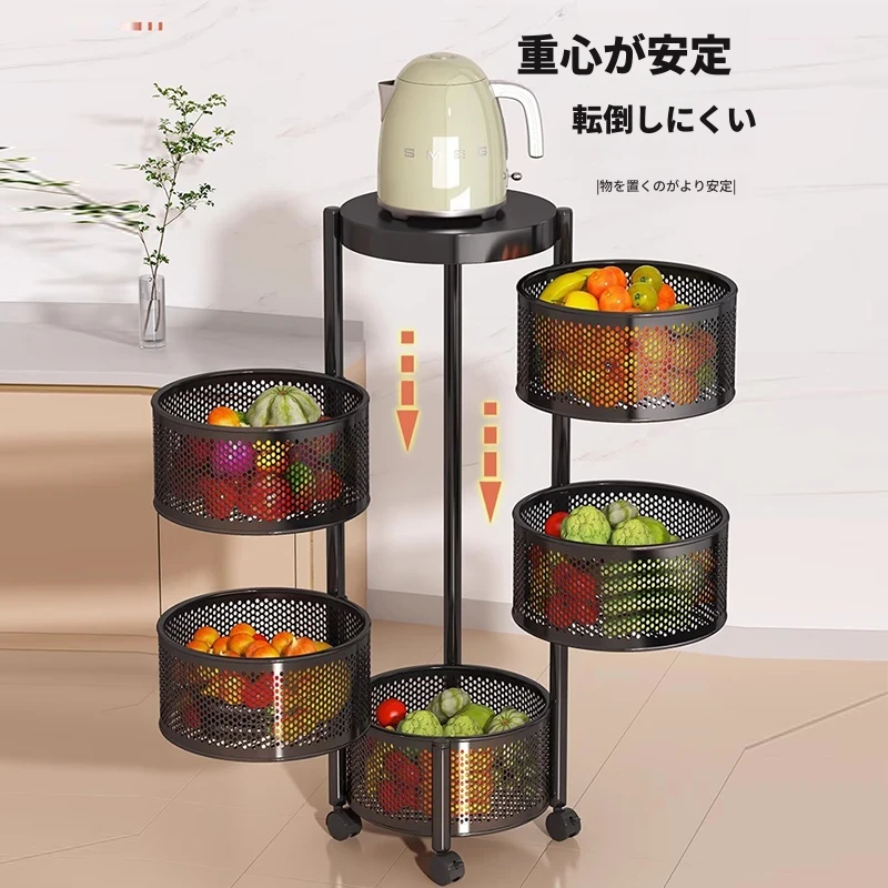 キッチン収納ラック 多機能 移動式 多層スナックストレージラック キャスター付き 家庭用ワゴン 本棚としても使える!整理整頓が簡単で、毎日の料理をもっと楽しく!