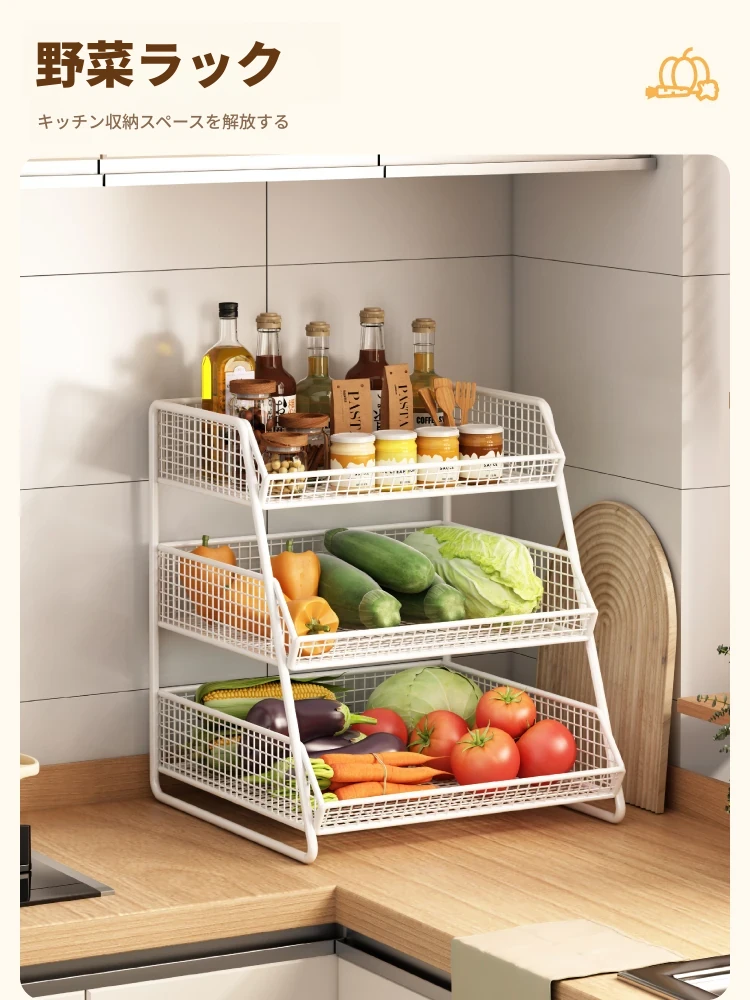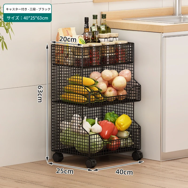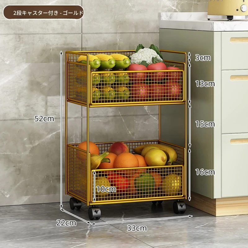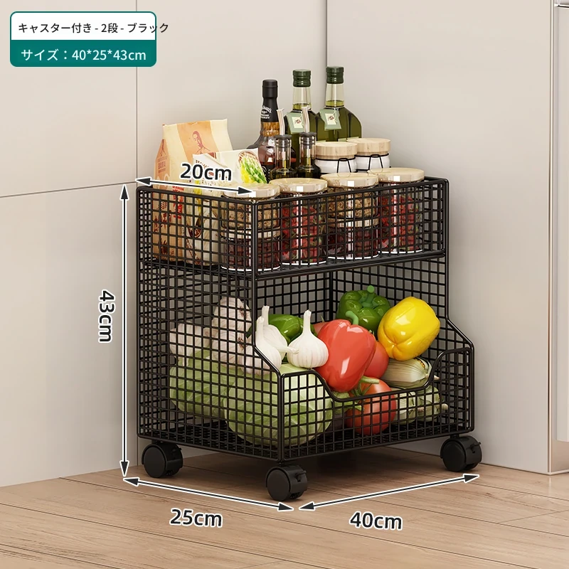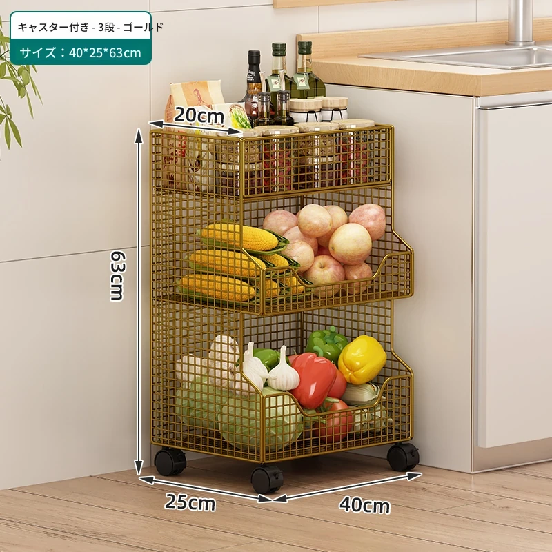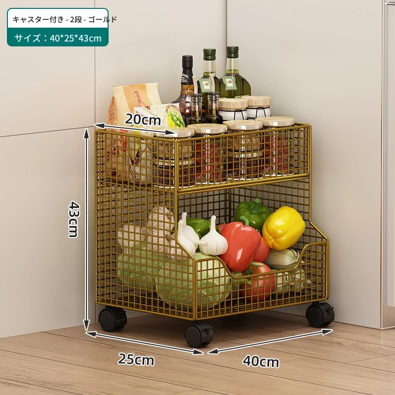 キッチンの多層移動式収納ラック - 野菜や果物、調味料もスッキリ整理!便利で機能的な台面収納で、あなたのキッチンを美しく整えましょう。