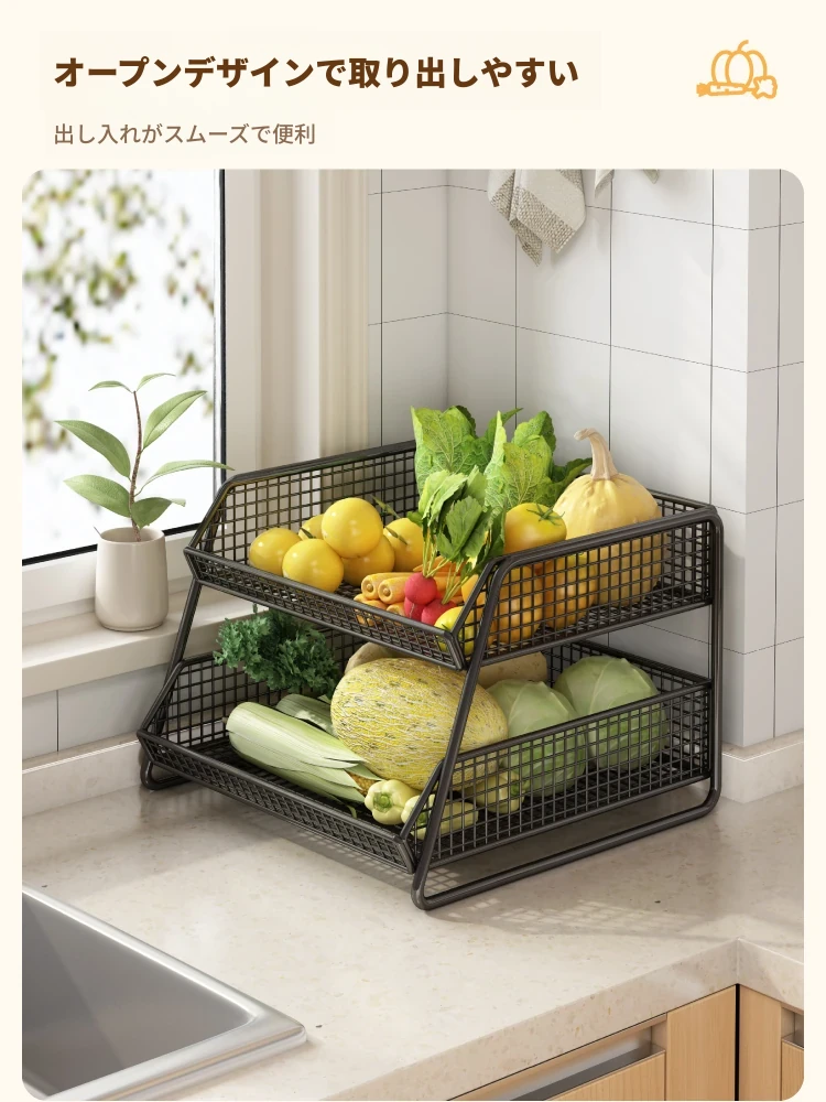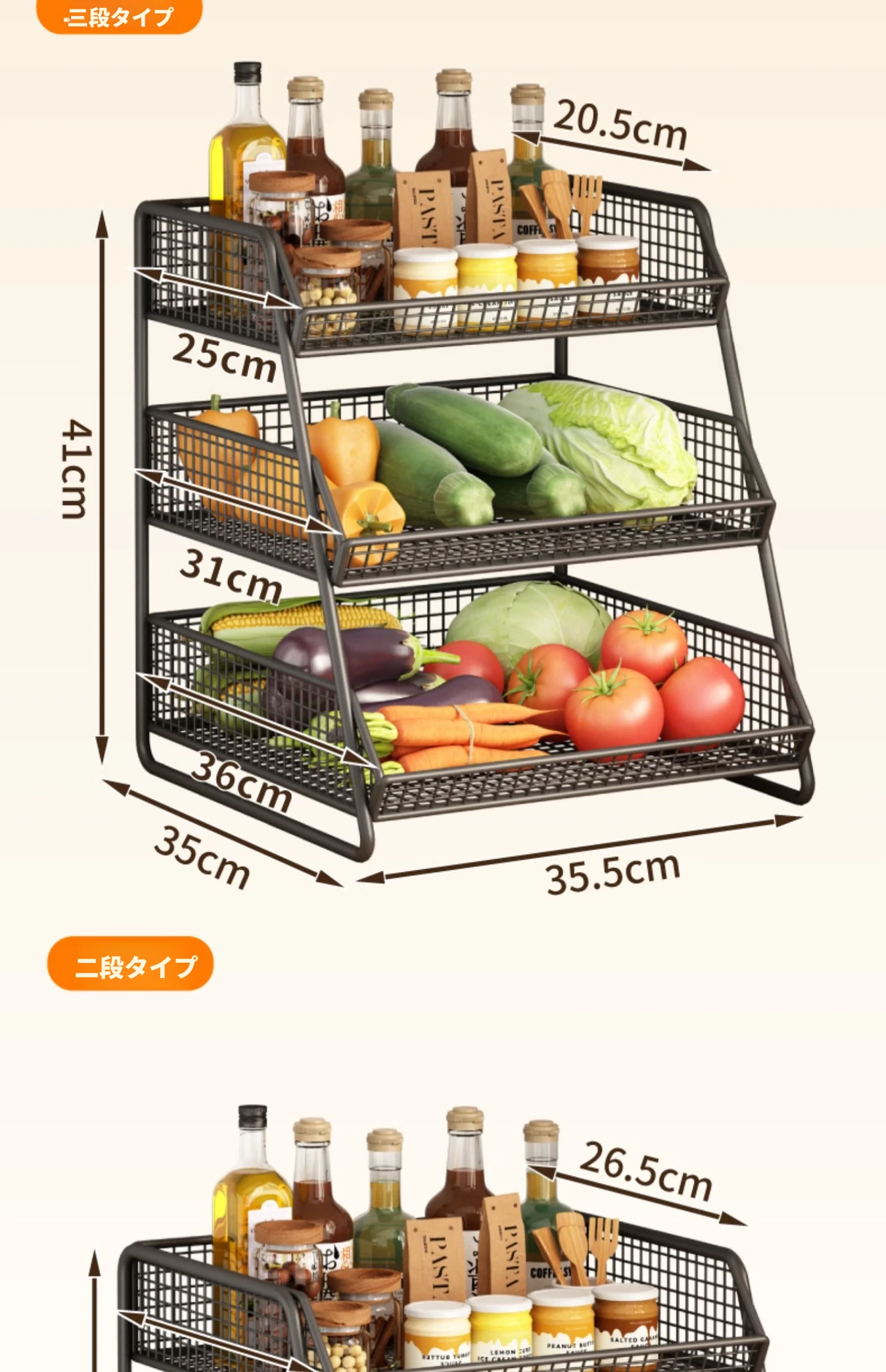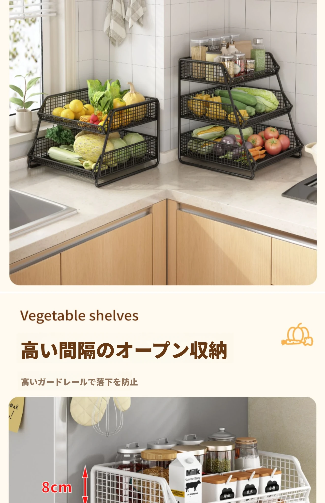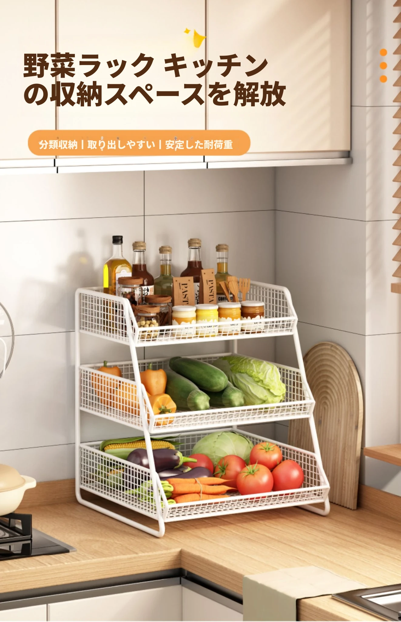 キッチンの多層移動式収納ラック - 野菜や果物、調味料もスッキリ整理!便利で機能的な台面収納で、あなたのキッチンを美しく整えましょう。